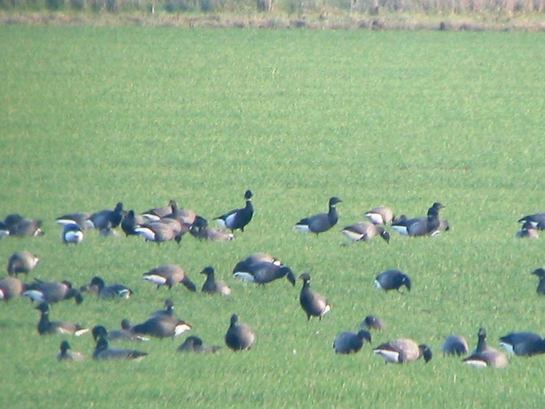 Black Brant (at rear of Dark-bellied Brent Goose flock), Limebrook Way, Dec 2005 (JB)